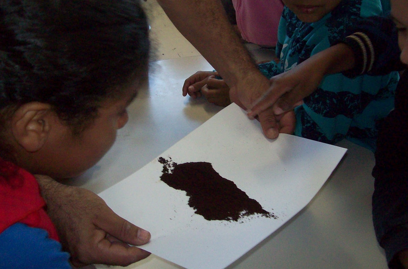 Os alunos também trouxeram para a sala o café em vários momentos e por iniciativa própria pesquisaram e apresentaram trabalho sobre o tema. Pudemos ouvir sobre o assunto e manipular a planta para melhor conhecê-la: